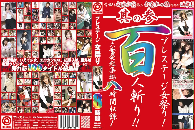 PRE-003 is a JAV porn movie released 2012-12-19. Prestige Women's Festival 8 Hours 3 is a JAV porn movie starring Hotaru Akane (Anna Akitsuki), Misaki Aso. PRE-003 is a movie by the JAV studio Prestige, and features Big Tits, Compilation, Gal, School Uniform. The runtime of PRE-003 is 484 minutes. JAV Database only provides official, legitimate & legal links to download, stream or purchase JAV videos.